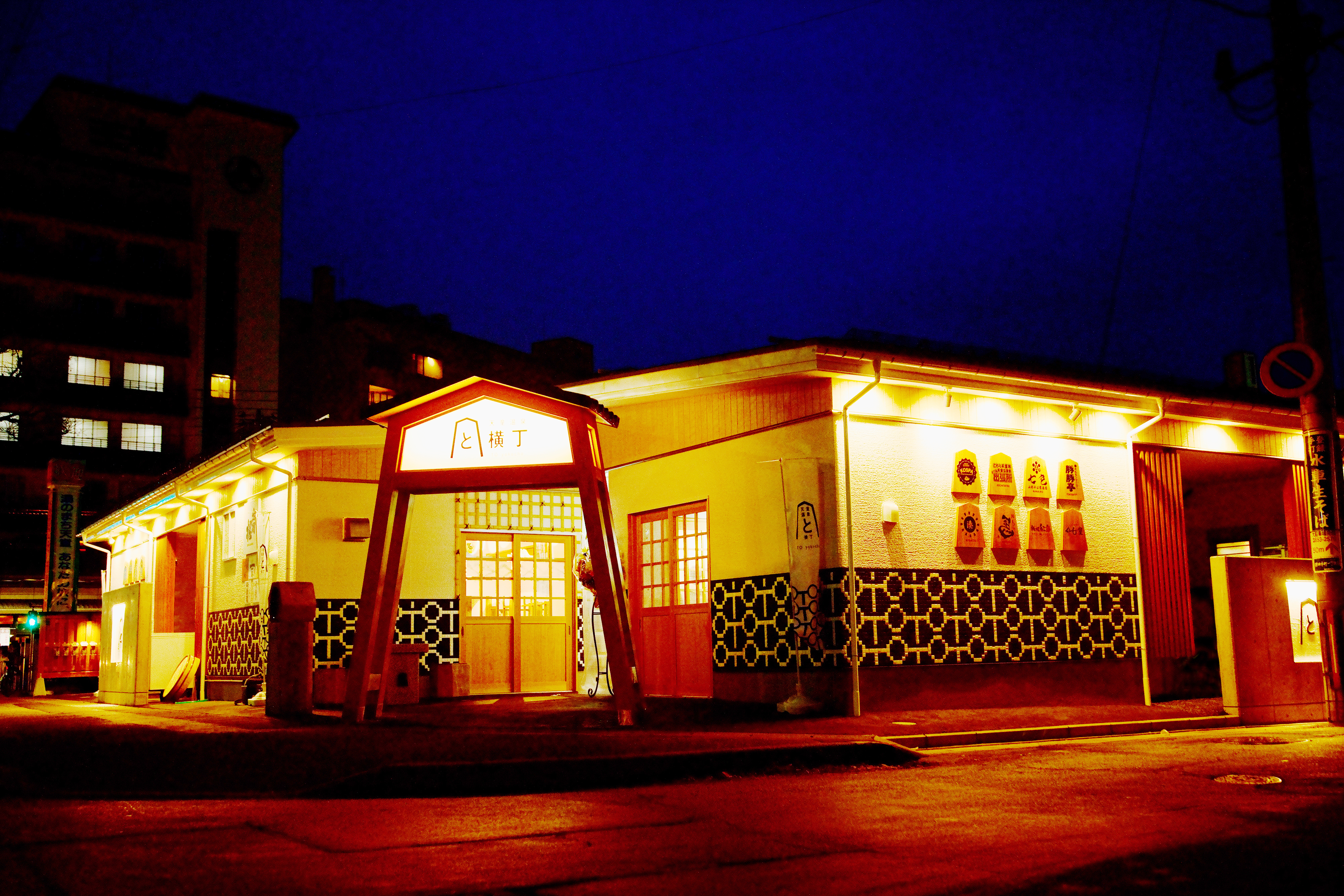 天童温泉街の中心にある屋台村「と横丁」。8店舗の屋台が地元の食材を使用し、自慢の一皿をご提供しています。季節にあった美味しい料理を色んな屋台で食べ比べ。お酒との相性もバッチリな逸品たちが勢ぞろいしております。