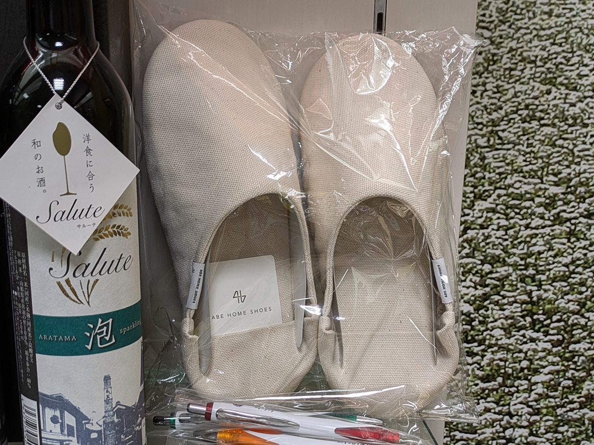 河北町の展示ブースに特産品のスリッパが追加されました。