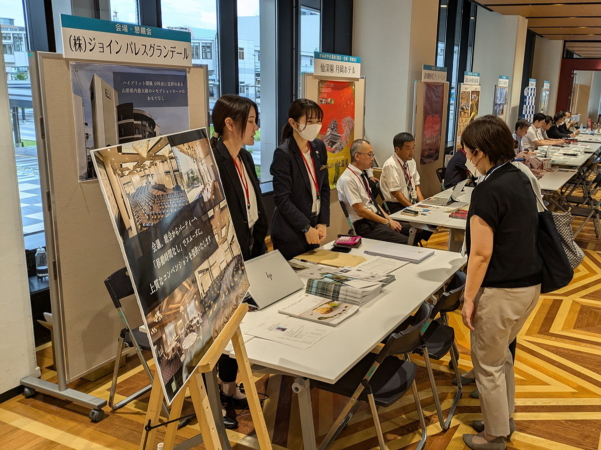 このイベントは、山形でコンベンションを開催予定、検討されている主催者様にご来場いただき、開催時にサポートする事業者様と直接商談いただくもので、3回目となる今年は、初めてやまぎん県民ホールを会場に開催しました。