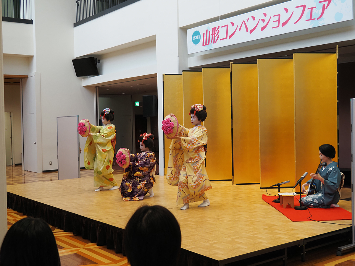 アトラクションステージでは、山形交響楽団様によるヴァイオリンデュオ、やまがた舞子・芸子の皆様による演舞をご披露いただき、開催時の参考にしていただきました。