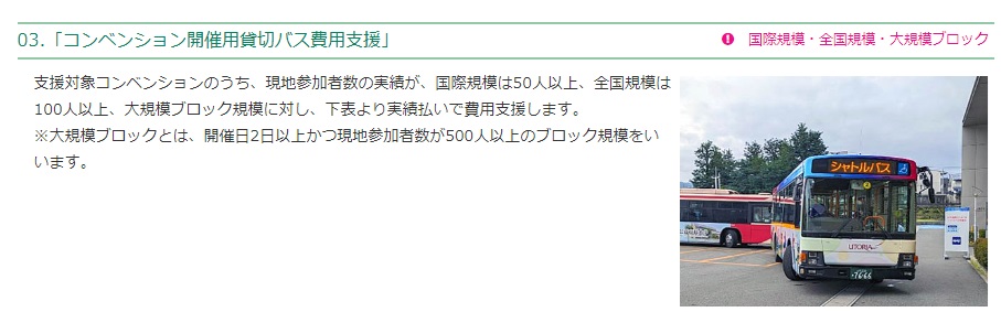 当ホームページの「コンベンション関連情報」>「コンベンションの支援について」のアトラクションと貸切バスの画像を更新いたしました。