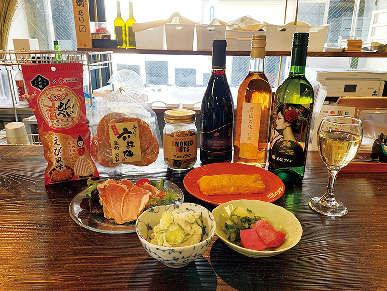 A liquor store where you can enjoy a drink at the corner. They stock local Yamagata sake and wines from the prefecture.