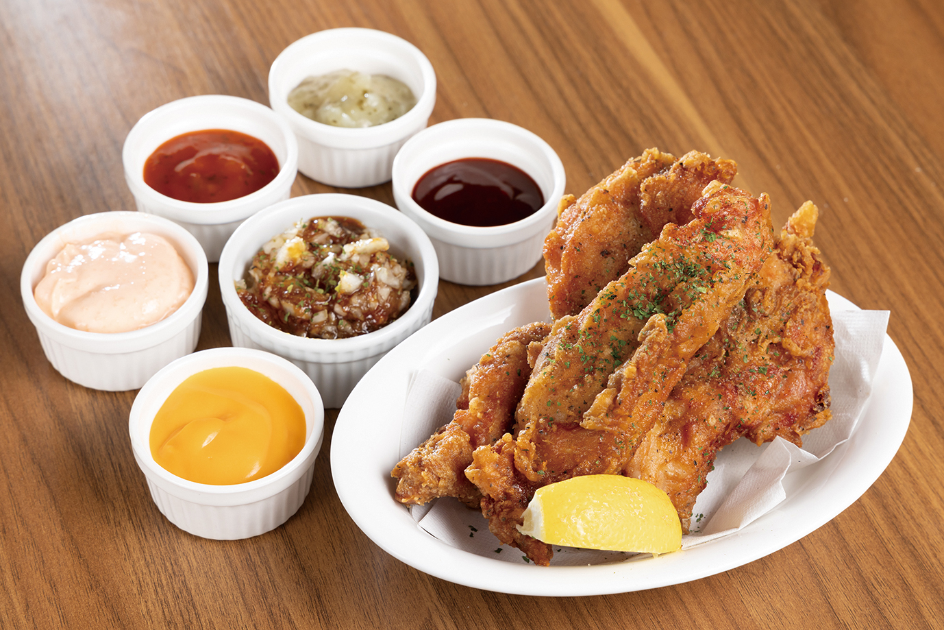 ピザの他にも、フライドチキンやアヒージョなどメニューはどれも500円前後とリーズナブル。飲み放題付きコースあります。