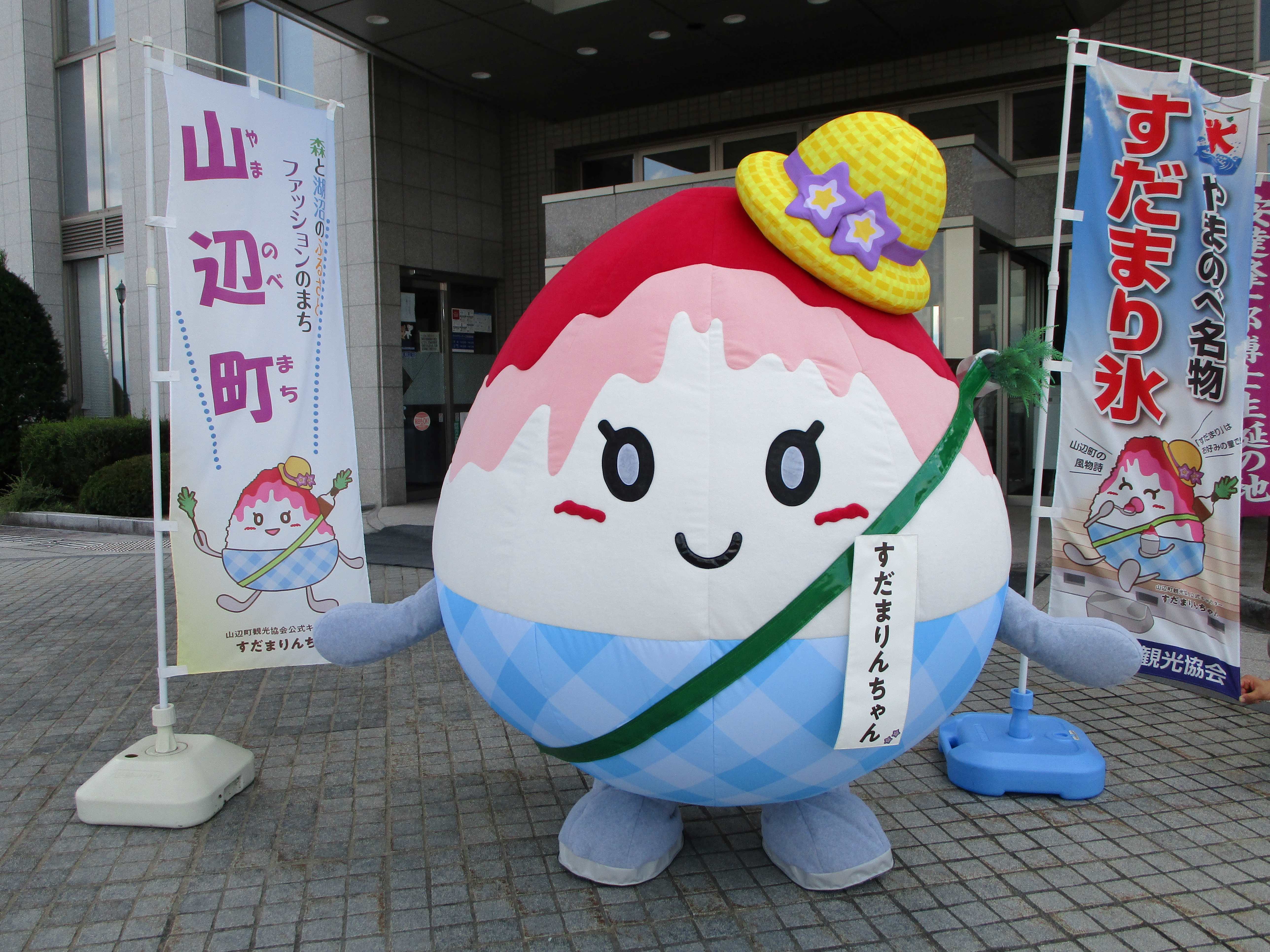 山辺名物「すだまり氷」をモチーフに誕生しました。頭にはいちごシロップと「すだまり」がかかっており、