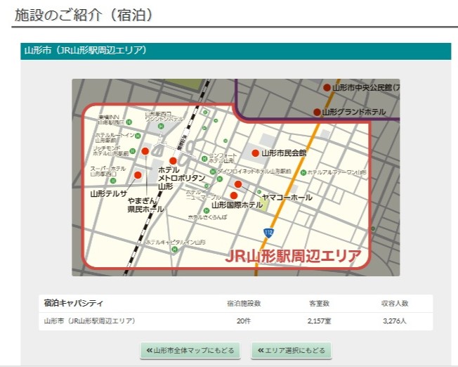 ホームお知らせ施設のご紹介(宿泊)の山形市「JR山形駅周辺エリア」と「天童市」を更新しました。