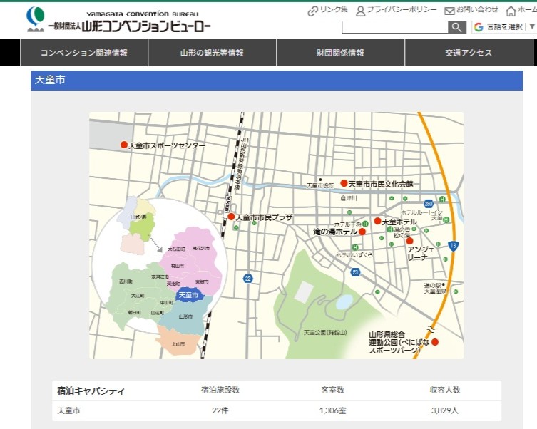 当ホームページ「施設のご紹介(宿泊)」の山形市、天童市の宿泊情報を更新いたしました。施設のご紹介では、エリアの宿泊施設数や宿泊キャパシティがご覧いただけます。コンベンションの開催地選定・企画にご利用ください。