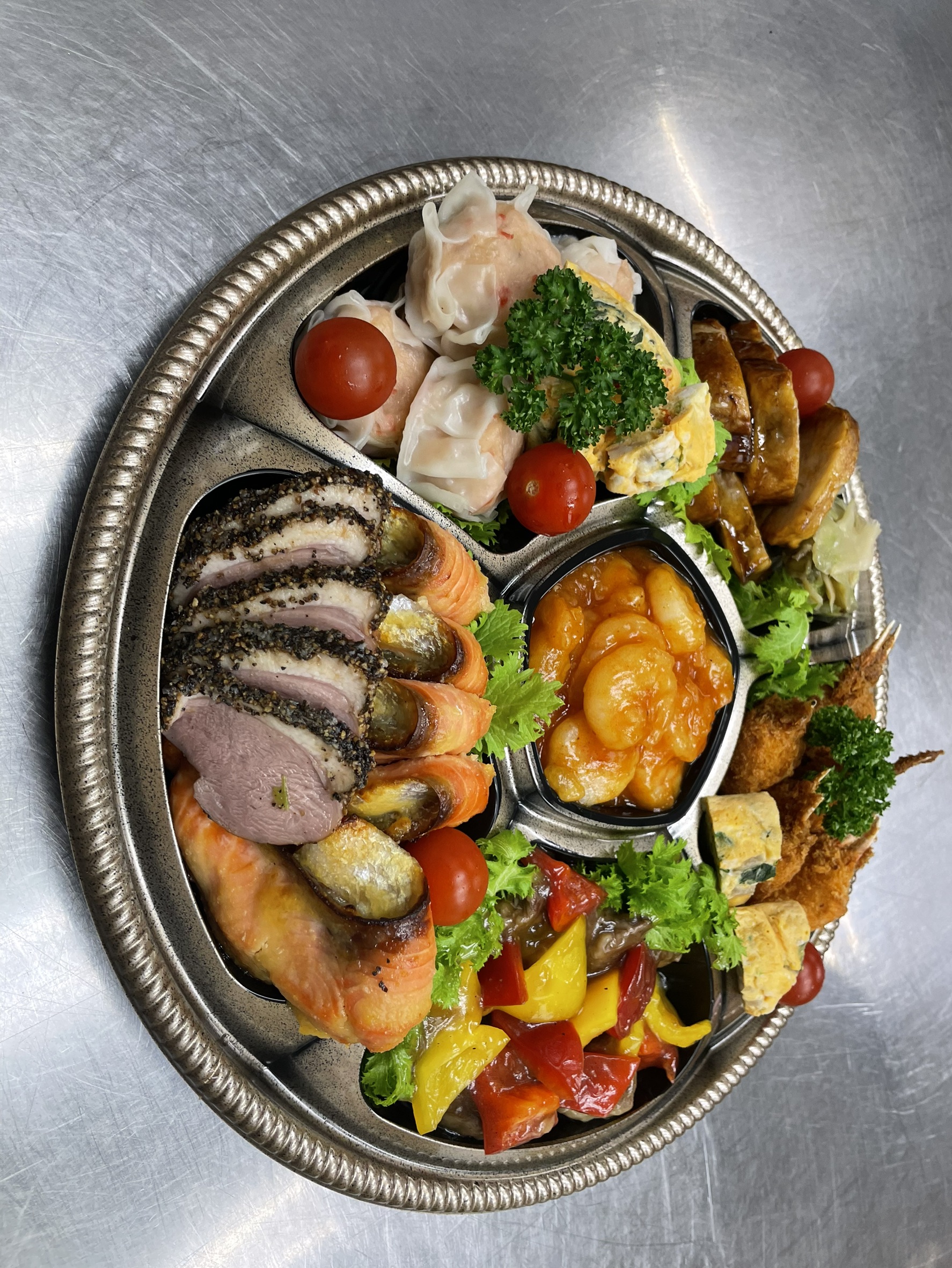 山形の食材を豊富に使った手作りお惣菜をショーケースにて販売。食べれば美味しくて笑顔がこぼれ、ほっこりするおばんざい。しあわせごはん(2,480円)やお惣菜のテイクアウト。会議用や施設へのお弁当なども人気!