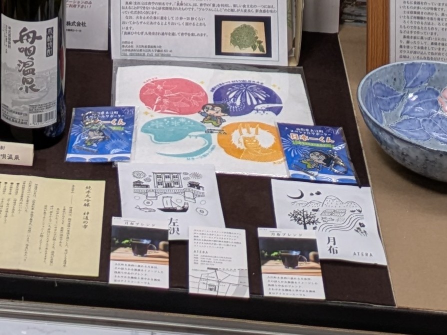 山形ビッグウイング1階エレベーターホール前にある、山形県村山広域圏観光物産コーナーの大江町展示コーナーに新しい展示品が入りました。ビッグウイングへお越しの際は、お立ち寄りください。
