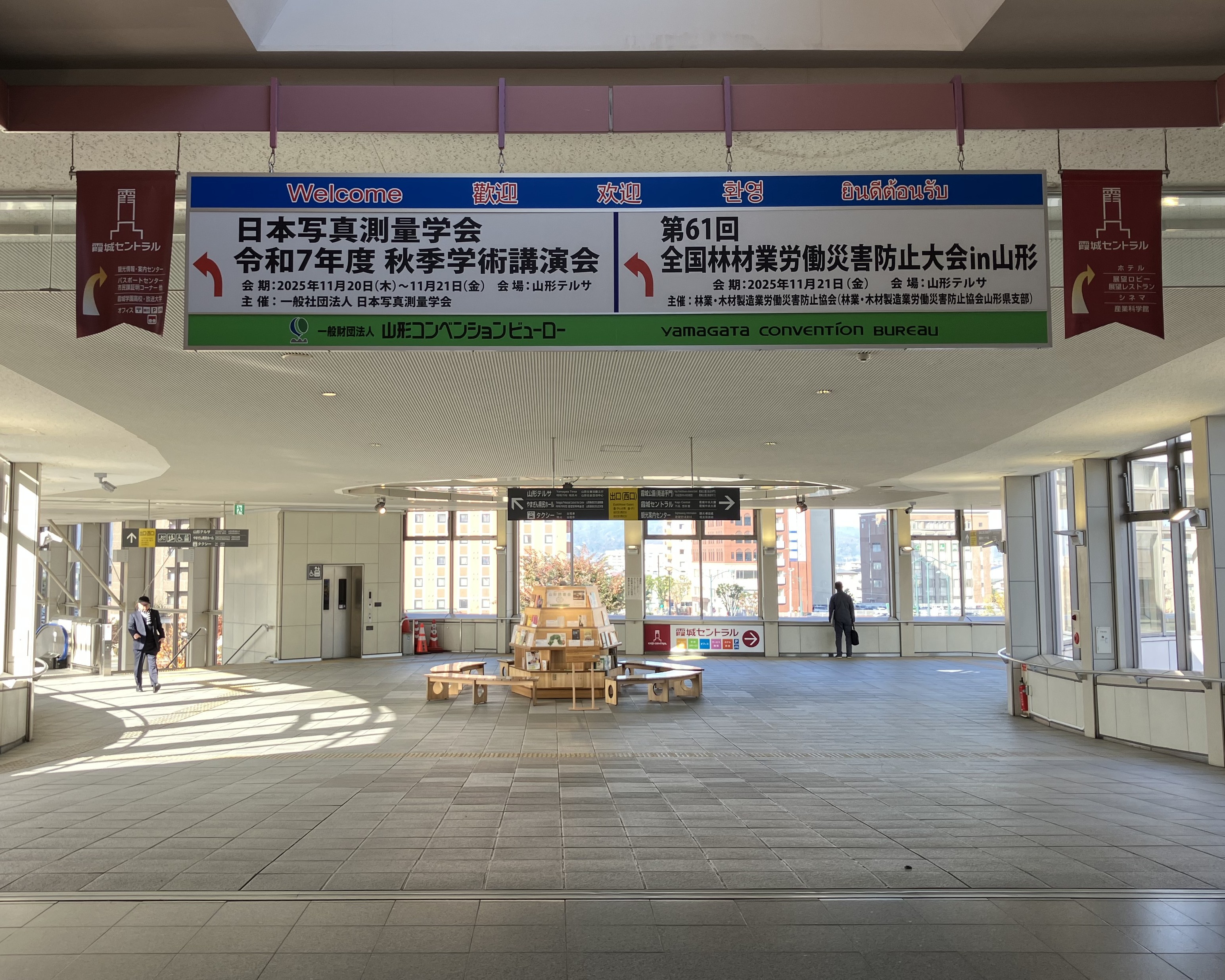 当財団では、アトラクション費用支援、貸切バス費用支援、JR山形駅西口に歓迎看板掲示、山形おもてなしガイド「ウマイベヤマガタ」の提供、懇親会場の装飾に大型花笠の貸出しの支援をさせていただきました。