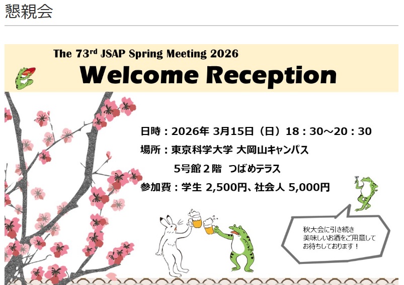 3月15日(日)に、東京科学大学大岡山キャンパスで開催される第73回応用物理学会春季学術講演会に参加し、学会参加者向けて山形をPRしてまいります。