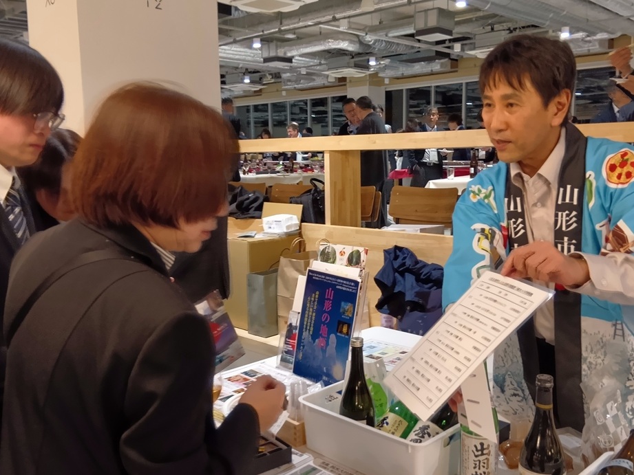 当財団では、山形の美味しい地酒とおつまみをお持ちし、山形の開催会場等をPRさせていただきました。