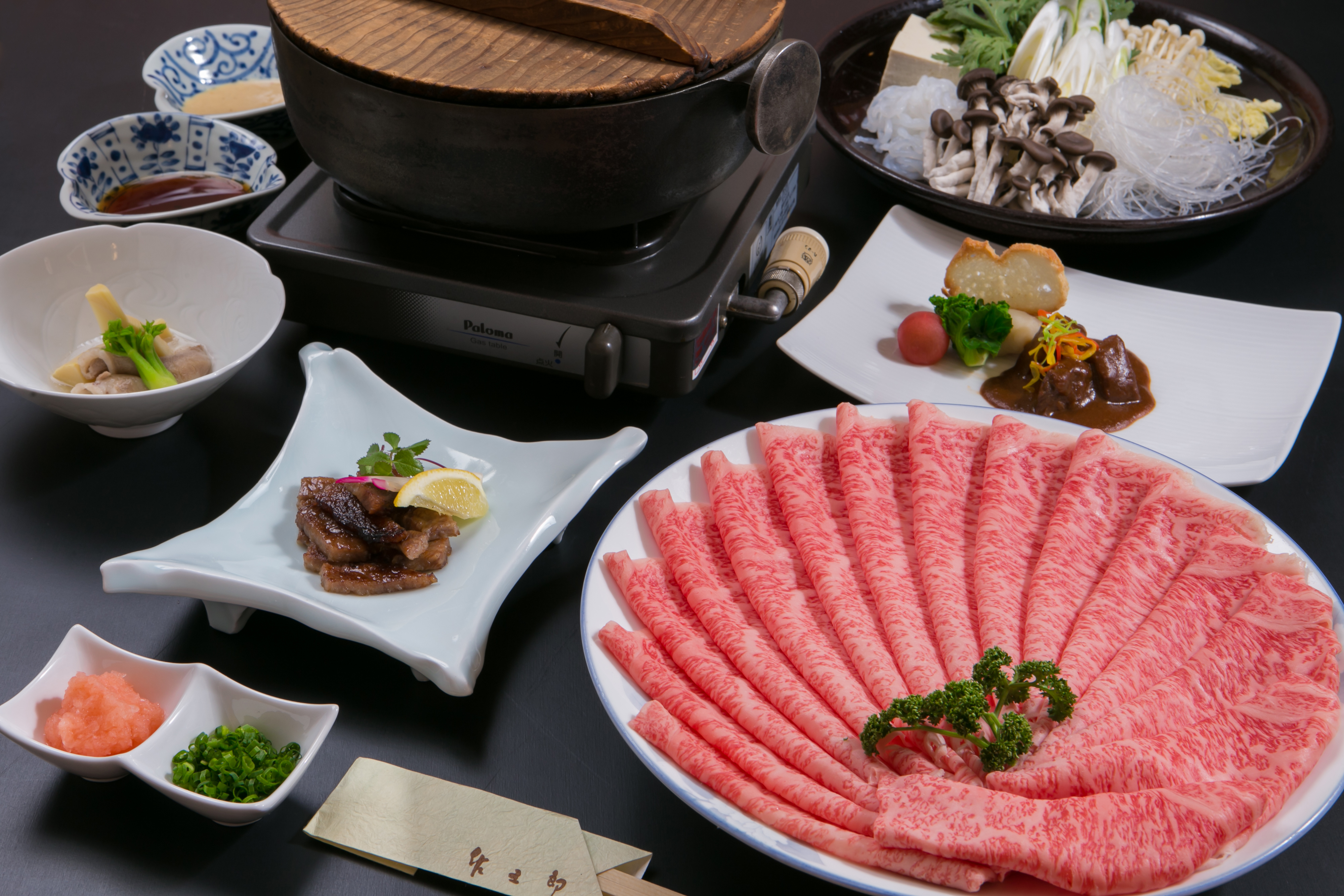 We mainly serve sukiyaki, shabu-shabu, and steak.