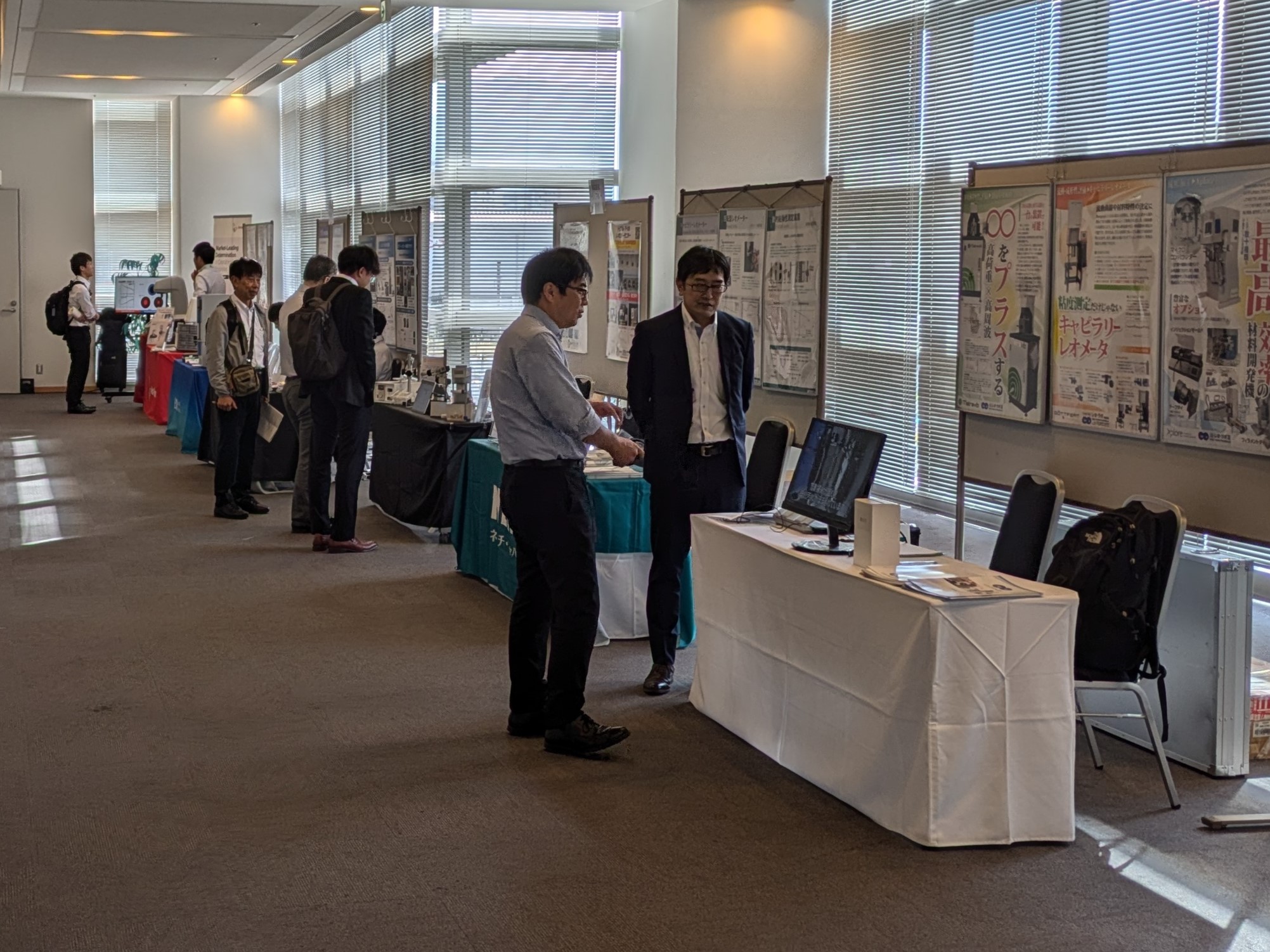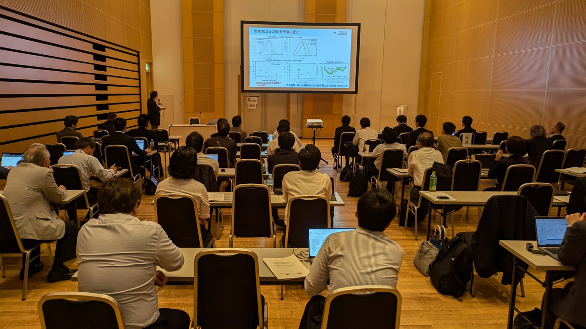 日本レオロジー学会と日本バイオレオロジー学会は山形テルサにて第72回レオロジー討論を開催しました。 6つのパラレルセッションで口頭発表128件とポスターセッション65件、特別講演2件、企業展示6件でした。 レオロジーとは、物質の流動と変形を取り扱う科学分野で、あらゆる物質を対象としており、 今回もゴムやプラスチック、塗料、生体、化粧品などさまざまな分野の研究者が集まり、 対面での熱い議論が交わされました。参加者より広い会場との声でした。 懇親会では山形開催とあって冷たいそば、この時期らしい芋煮、さらに山形牛を用意し、 何れもおいしかったと大好評で、特に対面調理しサーブされる山形牛コーナーには長い行列ができていました。 最後に、準備段階からお世話になった山形コンベンションビューロー様に深く感謝いたします。